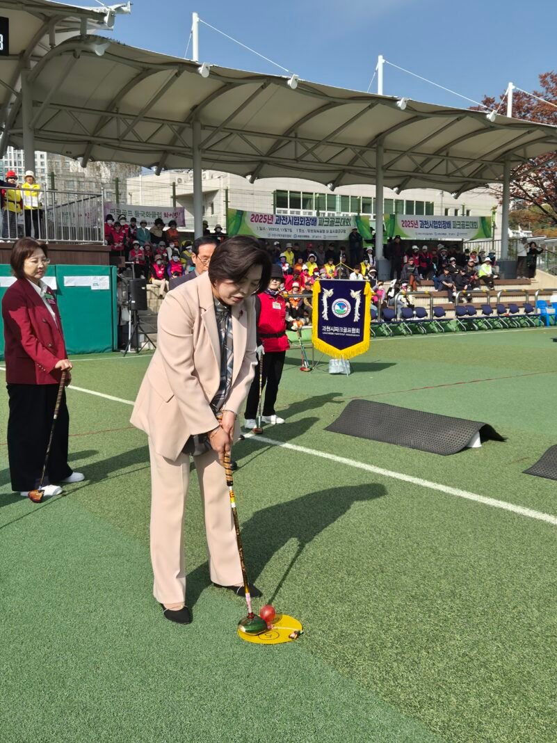 내빈들은 시타식을 통해 대회의 분위기를 한층 끌어올렸다. 신계용 시장은 “올해 안에 실내 파크골프장을 완공하고, 내년 봄에는 야외구장도 조성할 예정”이라고 밝혀 참가자들의 큰 호응을 얻었다.